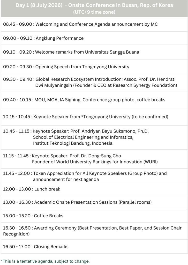 This conference not only give you global forum to share and exchange idea, research, and work. But also, provide wider network and research ecosystem for further collaboration and projects. We are glad to share this good opportunities in the scientific community, that will be offered ONLY for all participants who participate/ attend the conference.